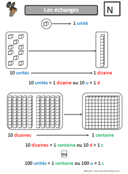Il est possible ensuite d'utiliser d'autres représentations comme l'argent (1 € , 10 €, 100€), les jetons (10 jetons jaunes = 1 jeton rouge, 10 jetons rouges = 1 jeton bleu)....