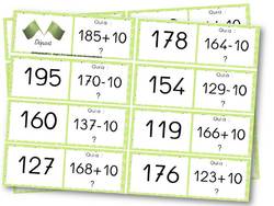Règle du jeu : Distribuer deux ou trois « dominos » par élève (l’élève ayant le domino départ doit avoir trois dominos). L’élève qui a le domino « départ » commence et lit sa question : Qui a 87+10 ? Le premier à annoncer « Moi ! J’ai 97 ! » a le droit de poser sa question à son tour. Et ainsi de suite jusqu’au domino « arrivée».