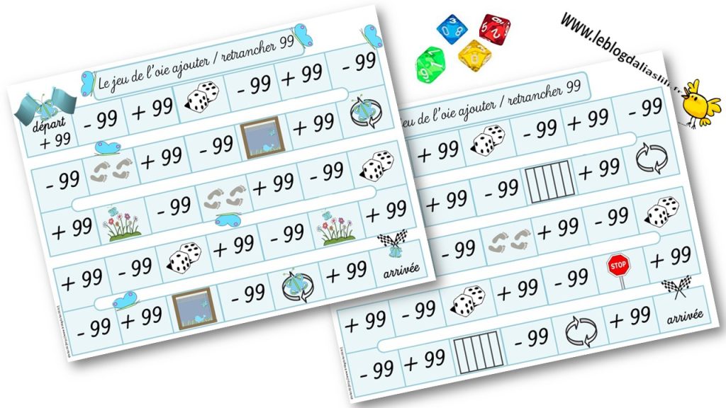 Voici un jeu de l’oie ajouter ou retrancher 99