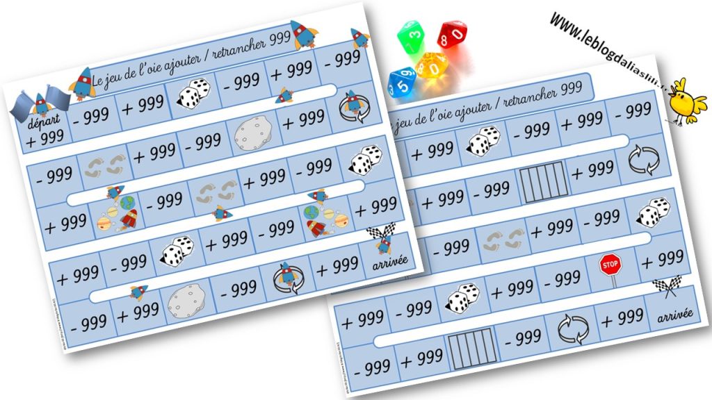 Voici un jeu de l’oie ajouter ou retrancher 999